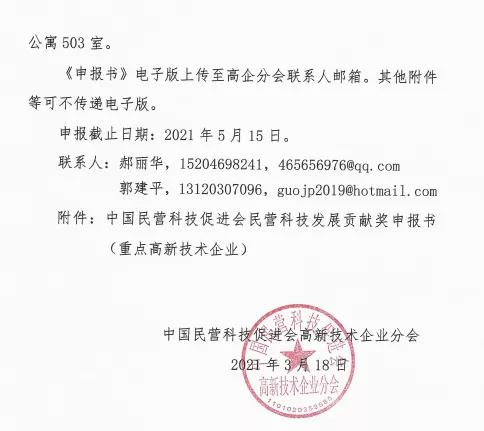 2、申報材料一式兩份,統(tǒng)一用A4紙裝訂成冊。請在2021年5月10日前將申報材料送至省高促會,逾期不再受理。